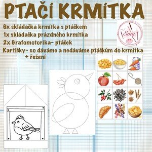 PTAČÍ KRMÍTKA Soubor obsahuje 7 pracovních listů – krmítek s ptáčky, z toho: 6 krmítek s předkreslenými ptáčky 1 prázdné