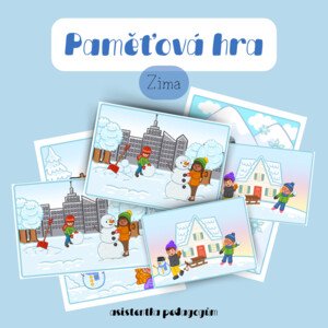 Paměťová hra - Zima Didaktická hra zaměřená na rozvoj paměti, pozornosti, zrakového vnímání a soustředění. Děti si