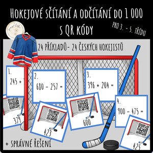 Hokejové sčítání a odčítání do 1 000 s QR kódy Tento výukový materiál s QR kódy je zaměřen na procvičování sčítání a