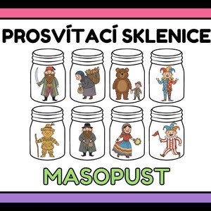 Do průhledných sklenic jsou vloženy obrázky k tématu Masopustu. Sklenice se nasvítí baterkou, přes okno nebo se položí